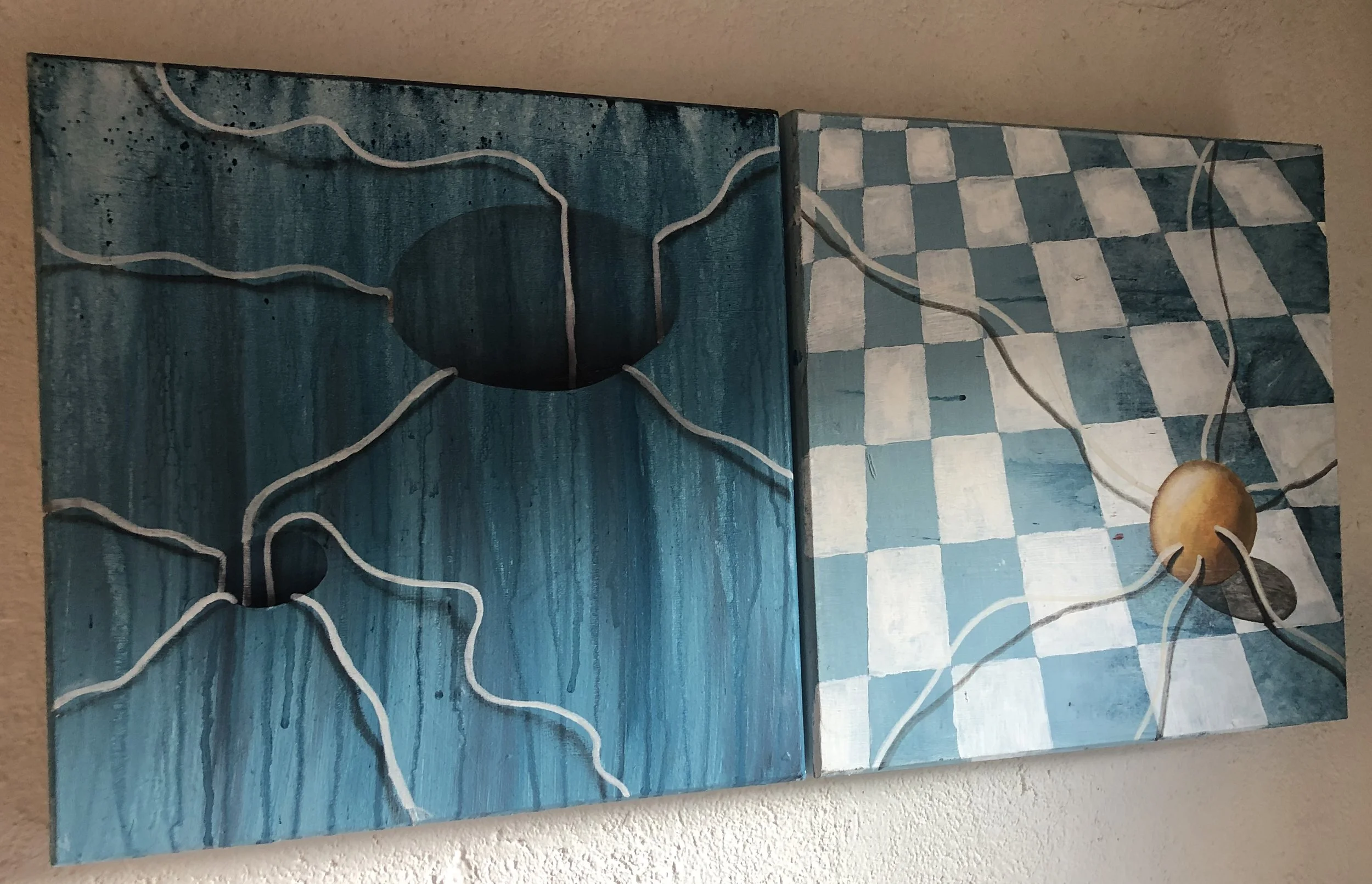 Tråde fra forskellige retninger der alle fører til et fælles samlingspunkt. Disse tråde repræsenterer menneskers livsrejser, hver med sin egen unikke vej, men alle forbundet på en eller anden måde. Samlingspunktet symboliserer de øjeblikke, hvor vores liv krydses, og vi møder andre mennesker, der påvirker vores rejse.